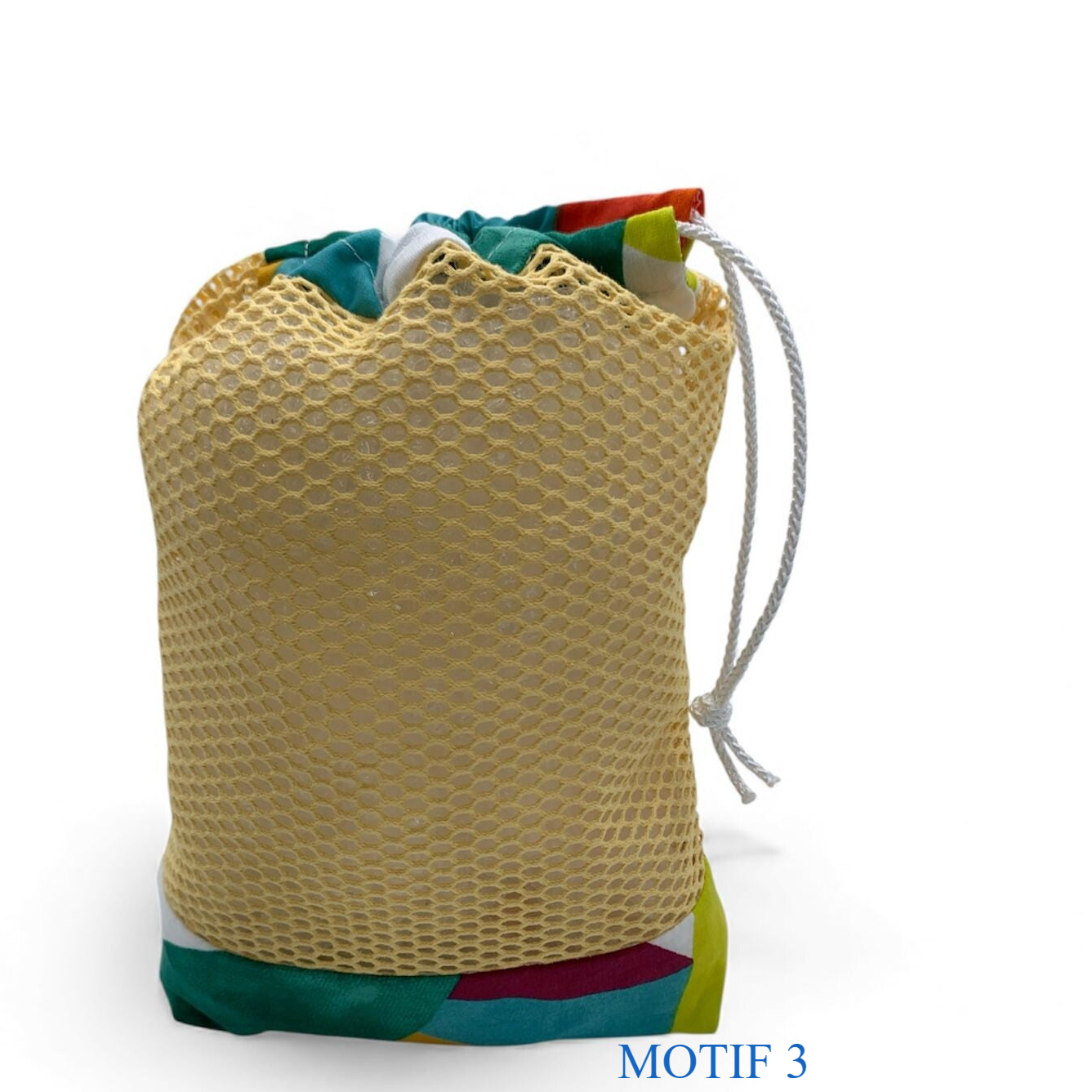 Petit sac de rangement en tissu filet et wax: compact, solide et ultra pratique, un indispensable pour garder sous-vêtements et accessoires parfaitement organisés en voyage.